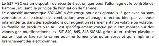 DISPOSITIF POUR ALLUMAGE ET CONTRÔLE DE FLAMME SIT 537 ABC : 0.537.201(02)